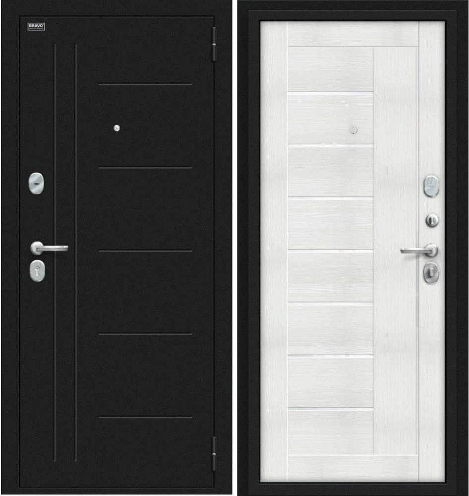 Надежная входная Дверь Браво Проф Букле черное/Bianco Veralinga премиум класса по цене 32 733 руб. Большая толщина стали защитит от проникновения в ваш дом, квартиру или коттедж. Используется очень качественная фурнитура: замки, цилиндры, ручки, защелки. Покрытие и отделка двери изготовлено под внимательным контролем производителя. Дверь имеет долгий срок службы и гарантию.